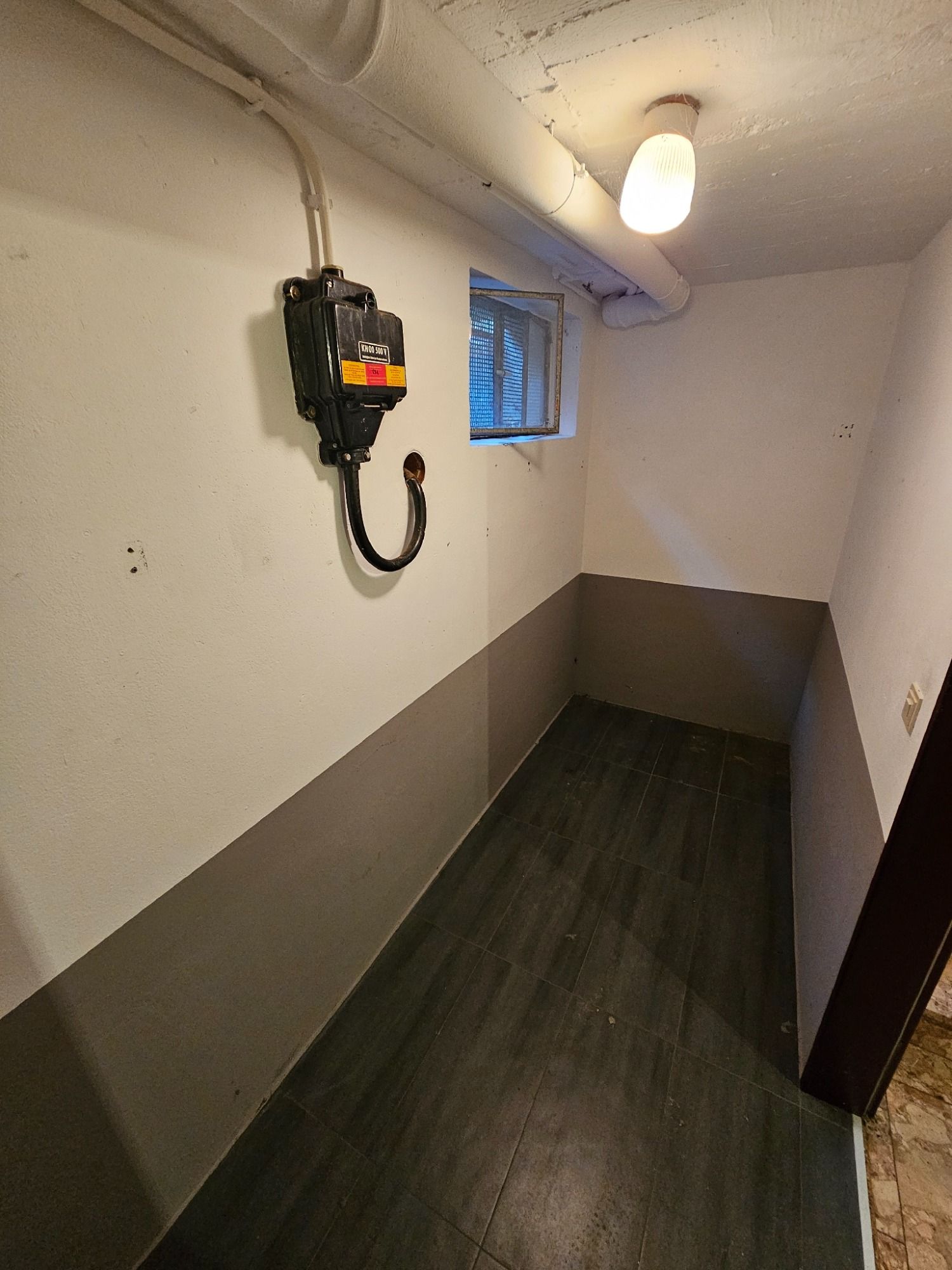 Es besteht die Möglichkeit, die beiden Zimmer miteinander zu verbinden. Zum Beispiel könnte ein begehbarer Kleiderschrank hier Platz finden. Auf der linken Seite gibt es noch ein Zimmer, dass auch wieder als Kinderzimmer oder Büro, Hobbyraum genutzt werden könnte. Am Ende des Flurs, kommen wir zu dem letzten Zimmer im ersten OG. Auch dieses Zimmer könnte wieder als Kinderzimmer oder Hobbyraum genutzt werden. Das komplette erste OG ist mit Teppichboden ausgestattet. Dieser müsste erneuert oder durch Parkett / Laminat-Boden ausgetauscht werden. Der Boden im Bad ist noch in einem guten Zustand. Die kompletten Tapeten müssten auch erneuert werden, da diese auch schon etwas in die Jahre gekommen sind. Der Vorteil ist, dass man sich nach seinen eigenen Wünschen und Vorstellungen gestalten und einrichten kann.